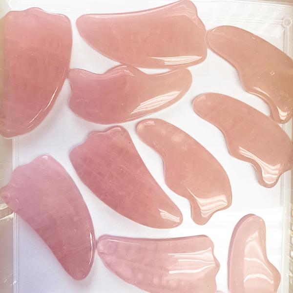 厳選された天然石から作られるかっさは、透明感があり柔らかな美しいピンク色。見ているだけでリラックスできます。