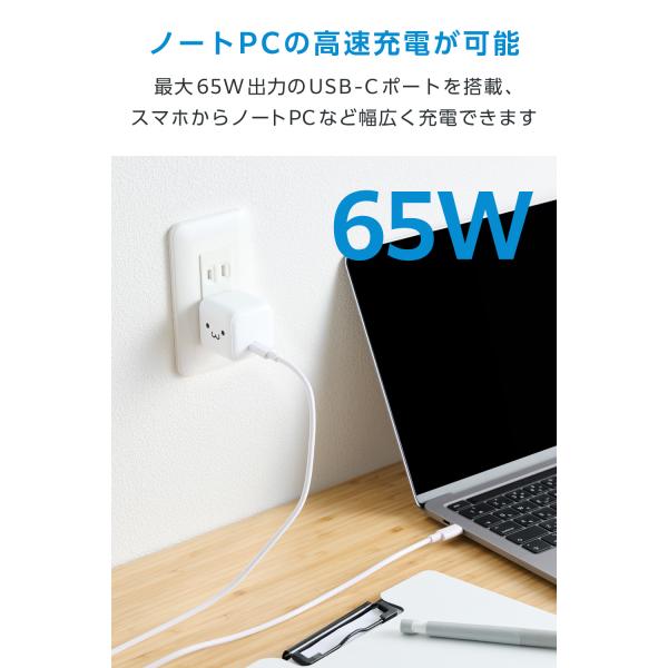 ■メイン機器をこれ1つで充電:最大65WのUSB-C PD対応で、スマホからノートPCまで電源をまとめたい人の荷物とコンセント不足を減らします。