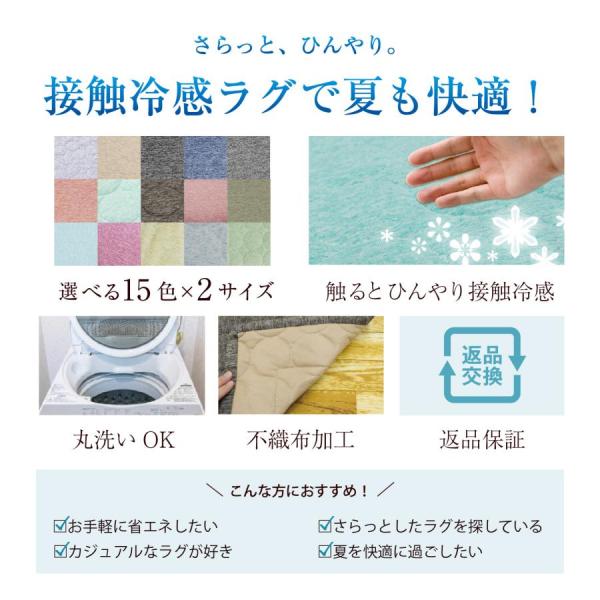 冷感 ラグ 3畳 190×240 ラグマット おしゃれ おすすめ キルティング 長方形 ひんやり 涼感 オールシーズン 洗える 夏 一人暮らし 子供部屋