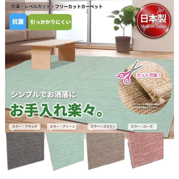 カーペット フリーカット 本間 4.5畳 286×286 黒 グリーン レベルカット 正方形 ソレイユ