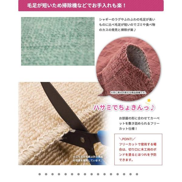 特徴:抗菌加工の日本製のカーペットハサミでフリーカットできるので、お部屋に形に合わせてハサミでカットすることができます。