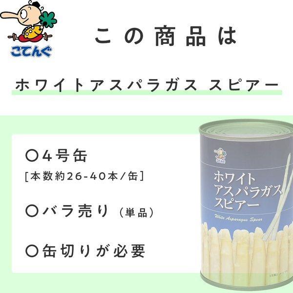 ホワイトアスパラガス水煮 缶詰 中国産 スピアー(穂先付茎) 4号缶 固形285g バラ売り 天狗缶詰 業務用 食品