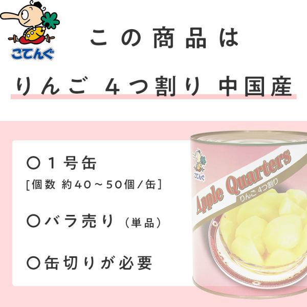 りんご 缶詰 中国産 四ツ割 1号缶 個数約40-50個 冷やしりんご お祭り イベントに バラ売り 天狗缶詰 業務用 食品