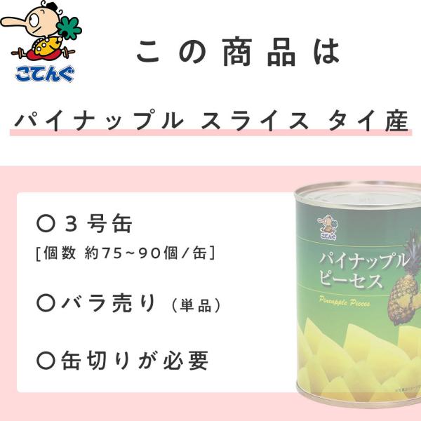パイナップル 缶詰 タイ産 ピーセス 3号缶 固形340g バラ売り 天狗缶詰 業務用 食品