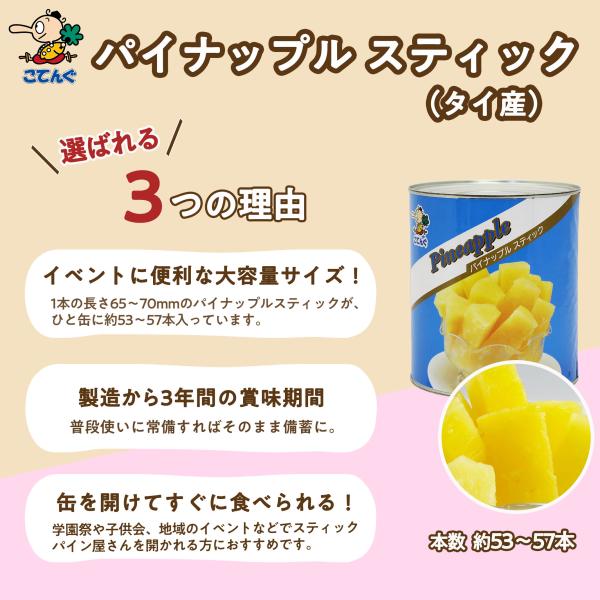 パイナップル 缶詰 タイ産 スティック 1号缶 個数約53-57本 冷やしパイン 業務用 学園祭 文化祭 バラ売り 天狗缶詰 食品