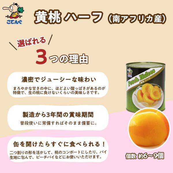 黄桃 缶詰 12缶セット 南アフリカ産 ハーフ 2号缶 個数約6-9個x12缶 黄桃ハーフ 天狗缶詰 業務用 食品