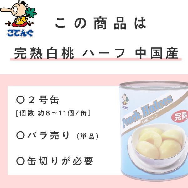 白桃(完熟) 缶詰 中国産 ハーフ 2号缶 個数約8-11個 バラ売り 天狗缶詰 業務用 食品