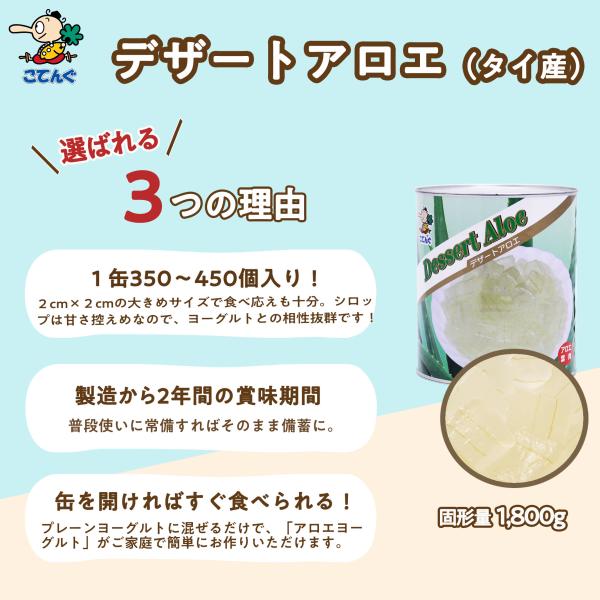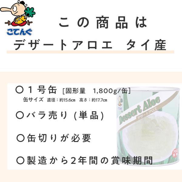 アロエデザート 缶詰 タイ産 1号缶 固形1,800g アロエベラ 食用 バラ売り 天狗缶詰 業務用 食品