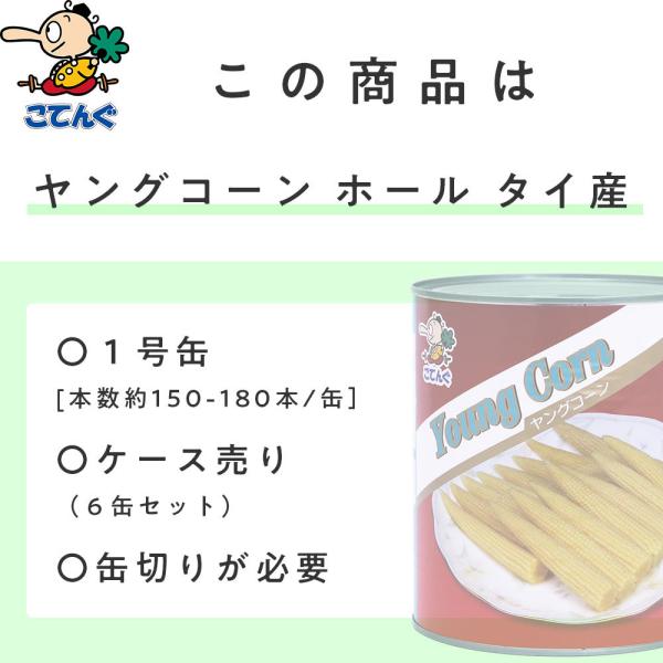 ヤングコーン水煮 缶詰 6缶セット タイ産 ホール 1号缶 個数150本以上x6缶 天狗缶詰 業務用 食品