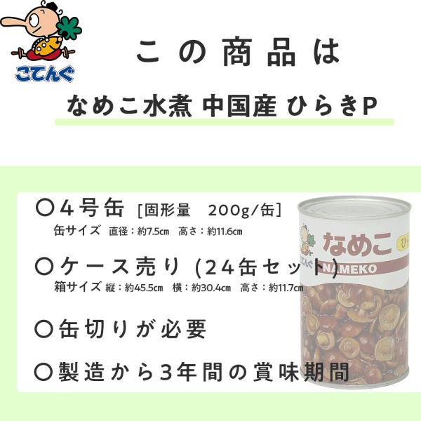なめこ水煮 缶詰 24缶セット中国産 ひらきP 4号缶 固形200gx24缶 天狗缶詰 業務用 食品