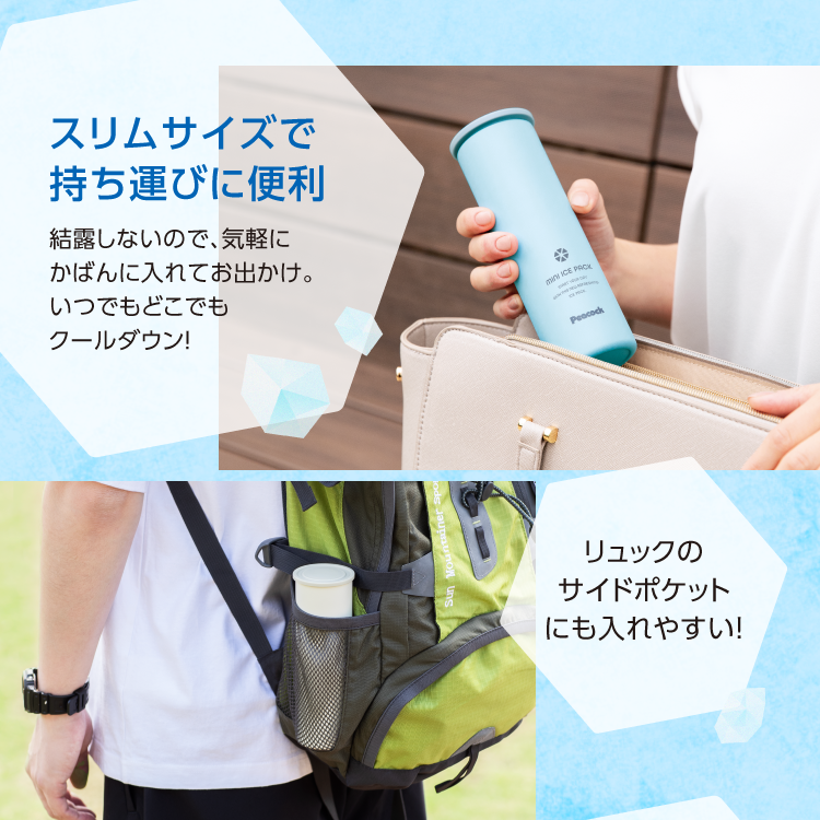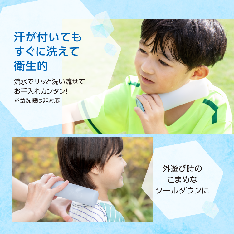 ・スポーツシーンはもちろん、通勤通学や日常の熱中対策などに幅広く使える冷却アイテム。