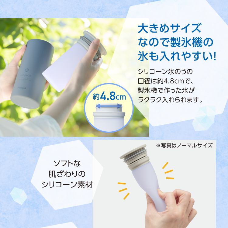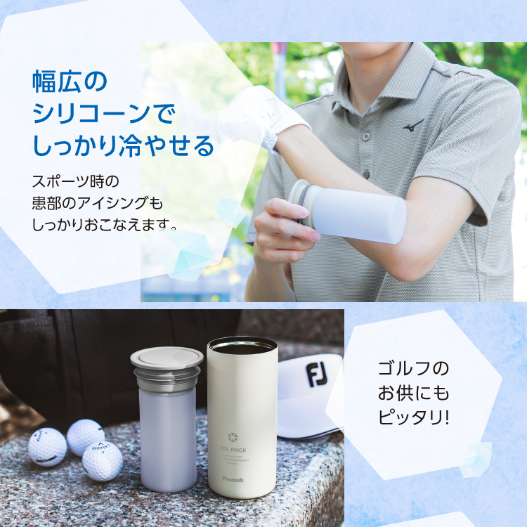 ・ステンレス真空断熱構造のホルダーがしっかり外気温を遮断し、氷のうの冷たさ長持ち。