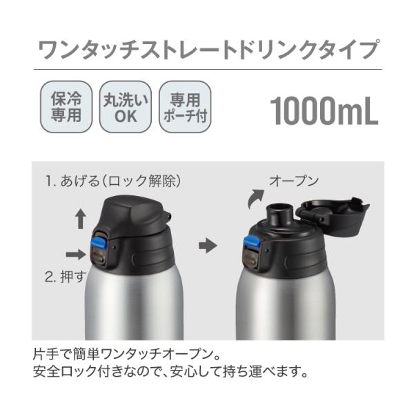 水筒 子供用 1リットル 保冷 肩紐 カバー付き 直飲み