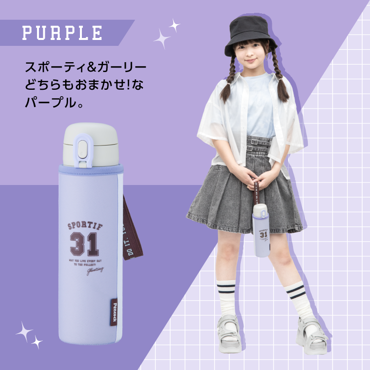 25AW新作P3倍 水筒 おしゃれ 女子 500ml ワンタッチ 水筒カバー付き 子供 軽量 軽い 保温保冷 ステンレスボトル ピーコック魔法瓶公式 女の子 AEH-F50 送料無料
