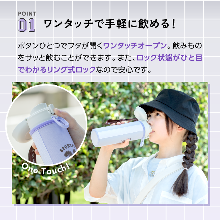 水筒 おしゃれ 女子 500ml ワンタッチ 水筒カバー付き 子供 軽い