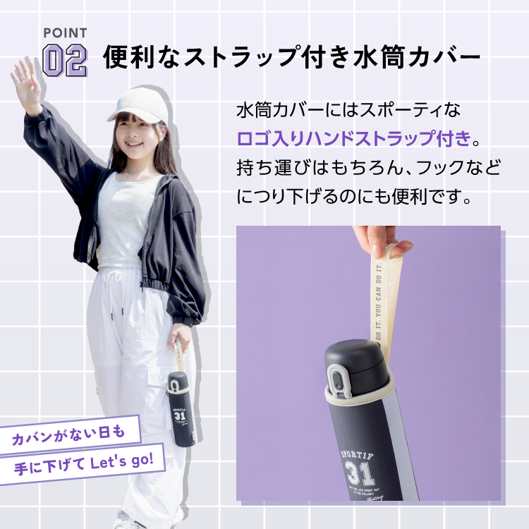 ・ハンドストラップ付き水筒カバー(ポーチ)がセット!
