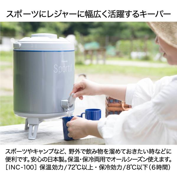 ウォータージャグ 日本製 9.5リットル 9.5L ピーコック公式 保冷 保温 広口 大容量 大人数 アルミ 内タンク キーパー INC-100 アウトドア 部活 災害対策 ポイント利用