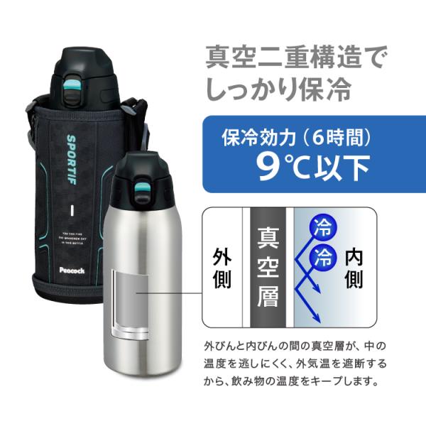 水筒 子供 800ml 1リットル弱 直飲み 肩紐 カバー付き 軽い 保冷 キッズ 子ども ピーコック魔法瓶公式 軽量 幼稚園 小学女子 男子 1L弱 AJC-F82 送料無料