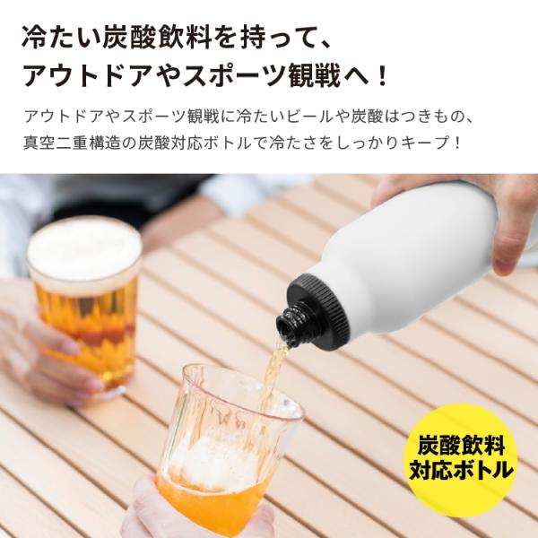 ・炭酸飲料が持ち運べるステンレスボトル。*本体を激しく揺らすと、ふたを開けた際中身があふれる場合がございます。