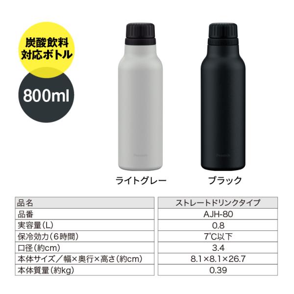 P3倍 水筒 800ml 炭酸対応 スポーツドリンク対応 保冷 ピーコック魔法瓶公式 ビール シャンパン ステンレス ギフト お酒 アウトドア AJH-80