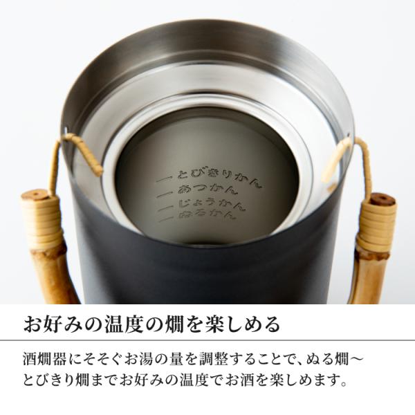 ・お湯の量の調節でぬる燗〜とびきり燗までお好みの温度の燗を楽しめます。