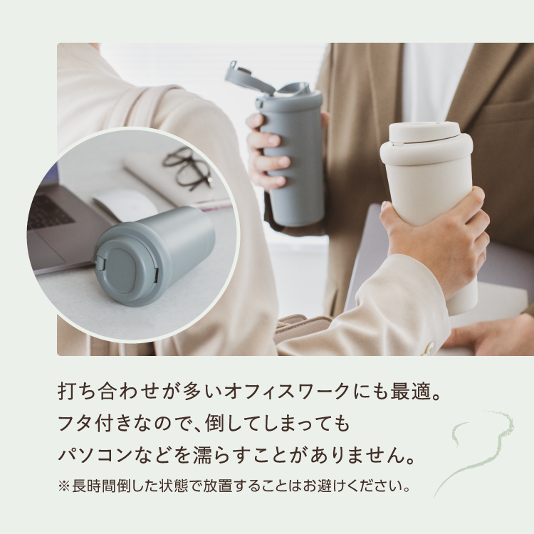 ・ふたにはシリコーン製のパッキンがついているのでもれにくい。