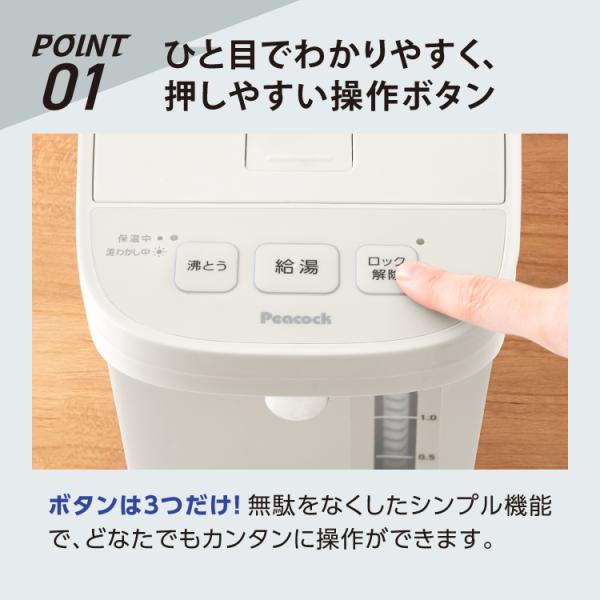 電気ポット 早沸きタイプ 1.2リットル 1.2L 1200W ハイパワー マイコン 保温 母の日 2026 プレゼント ギフト フッ素フリー ピーコック公式 1L WMR-12