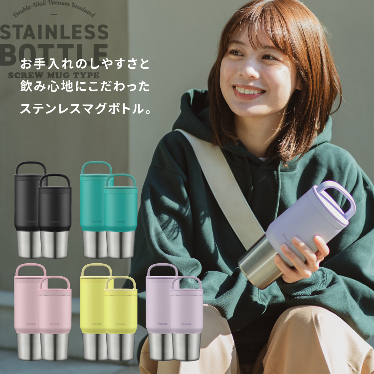水筒 食洗機対応 ステンレスマグ 600ml 500ml以上 ハンドル付き 保冷保温 タンブラー 取っ手 洗いやすい 持ち運び ピーコック魔法瓶公式 AEF-60 送料無料 マグボトル 蓋付き 飲みやすい 0.6L 広口 蓋つき ふた フタ スポーツ ヨガ ジム 部活 おしゃれ フッ素フリー スタンレー クエンチャー エアロライト 車のドリンクホルダーに入る ポイント利用