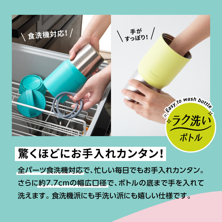 ・幅広の口径なので、スポンジなどでのお手入れがしやすい。