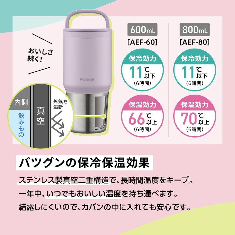 P3倍 水筒 食洗機対応 ステンレスマグ 600ml 500ml以上 保冷保温 タンブラー 洗いやすい 持ち運び 母の日 2026 プレゼント ピーコック公式 AEF-60 送料無料