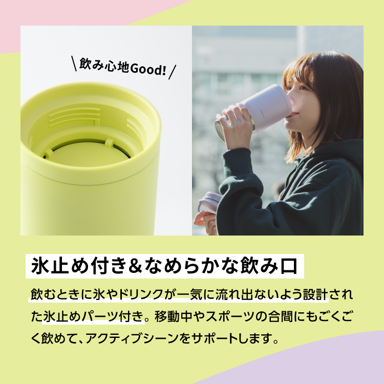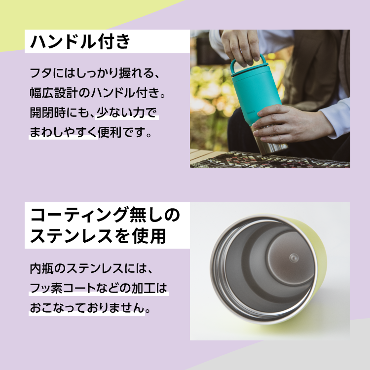 ・ステンレス真空断熱構造でしっかり外気温を遮断、保冷保温効果に優れています。