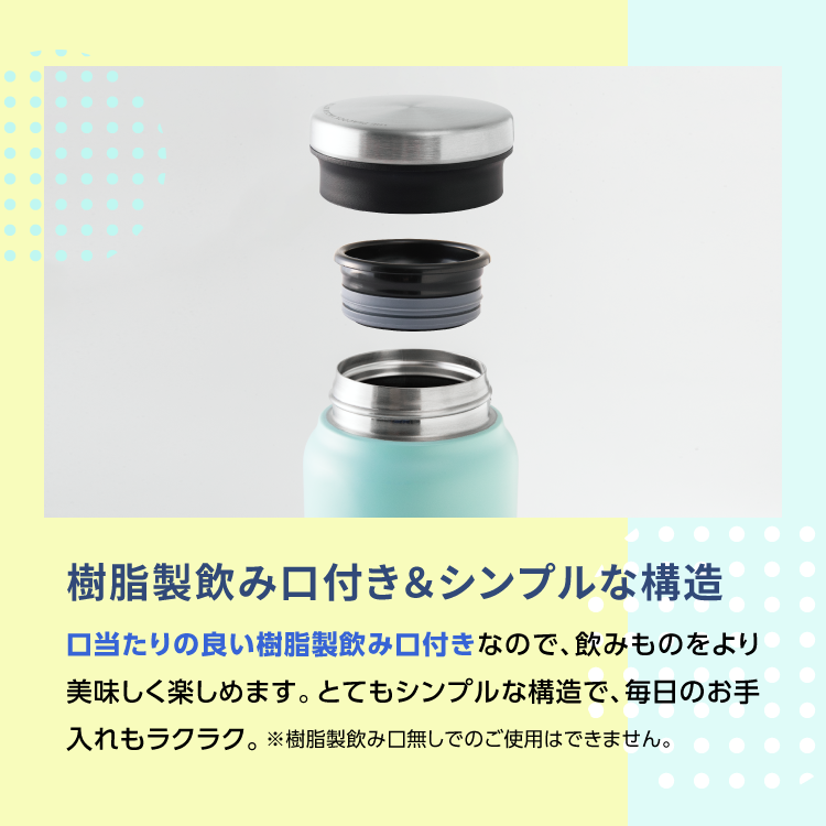 ・せん、飲み口にはシリコーン製のパッキンがついているのでもれにくい。