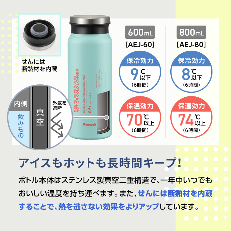 水筒 ステンレスマグボトル 800ml 1リットル弱 保冷保温 軽い 軽量 ピーコック魔法瓶公式 おしゃれ シンプル スクリュー 直飲み 大容量 AEJ-80 ジム スポーツ アウトドア キャンプ 山登り サイクリング オシャレ 通学 通勤 メンズ レディース 男性 女性 男の子 女の子 子供 子ども こども キッズ 小学生 中学生 高校生 学生 大人 0.6L ポイント利用