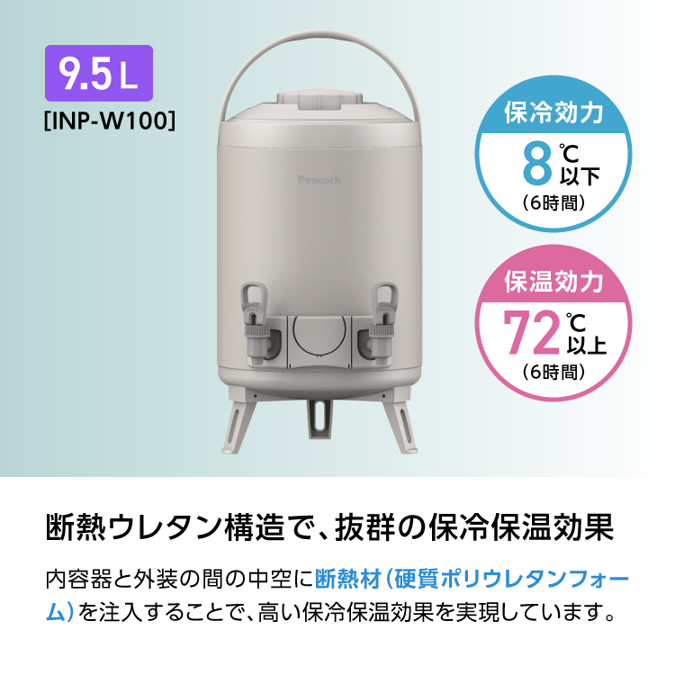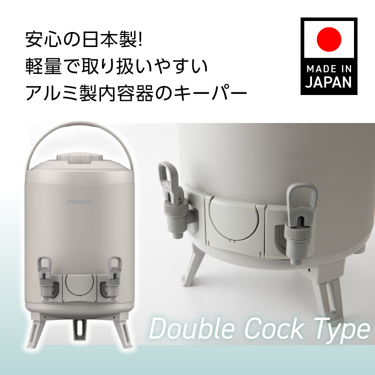 新作P5倍 ウォータージャグ 日本製 9リットル 9.5L ダブルコック 10L弱 ピーコック魔法瓶公式 サーバー キーパー 保冷 保温 広口 アルミ製内容器 INP-W100