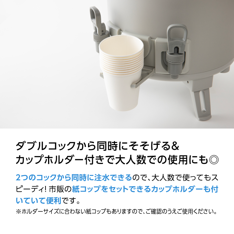 ・市販の紙コップをセットできるカップホルダー付き。