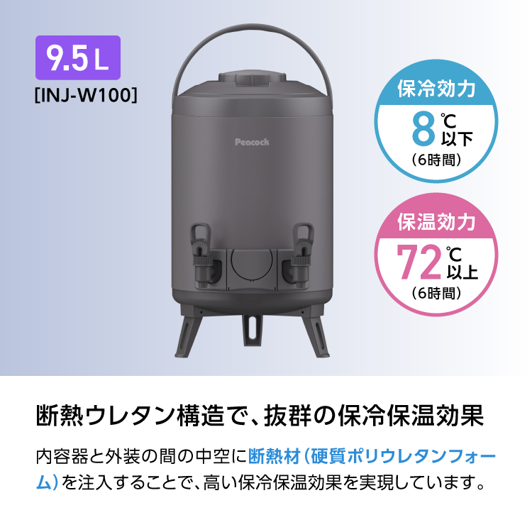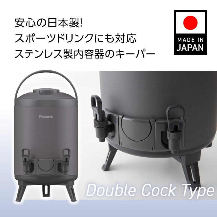 26SS新作 ウォータージャグ 日本製 9リットル 9.5L ダブルコック 10L弱 スポーツドリンク対応 ピーコック魔法瓶公式 キーパー 保冷 保温 ステンレス INJ-W100