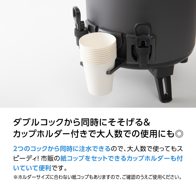 ・市販の紙コップをセットできるカップホルダー付き。