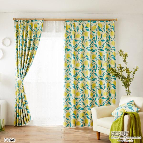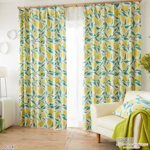 ピーナッツカーテン キャンプレモン(幅100cm×丈135cm)ウォッシャブル 遮光2級 形状記憶 ドレープ スヌーピー ウッドストック