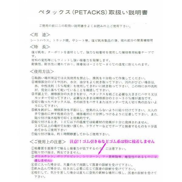 テント、シートの強力粘着補修用テープです。