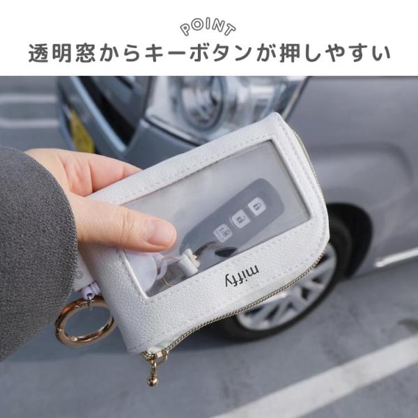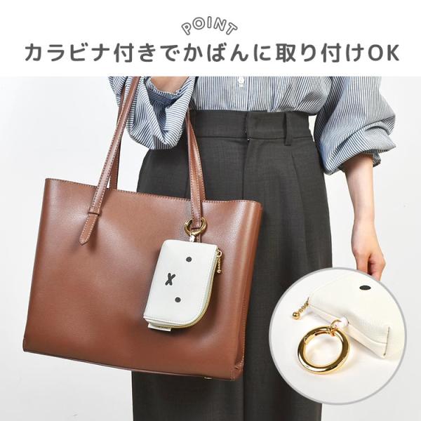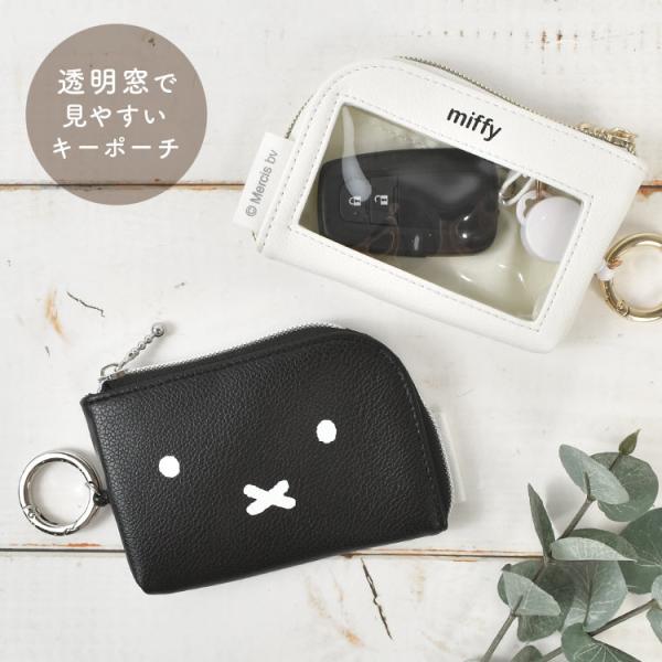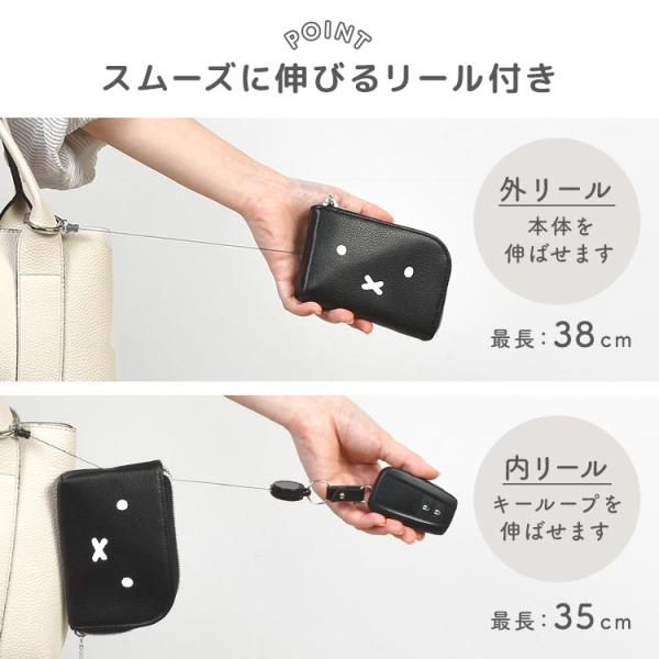 スマートキーケース ミッフィー miffy 伸びる リール付き パスケース キャラクター キーポーチ カラビナ 車の鍵 カギ 合皮 黒 白