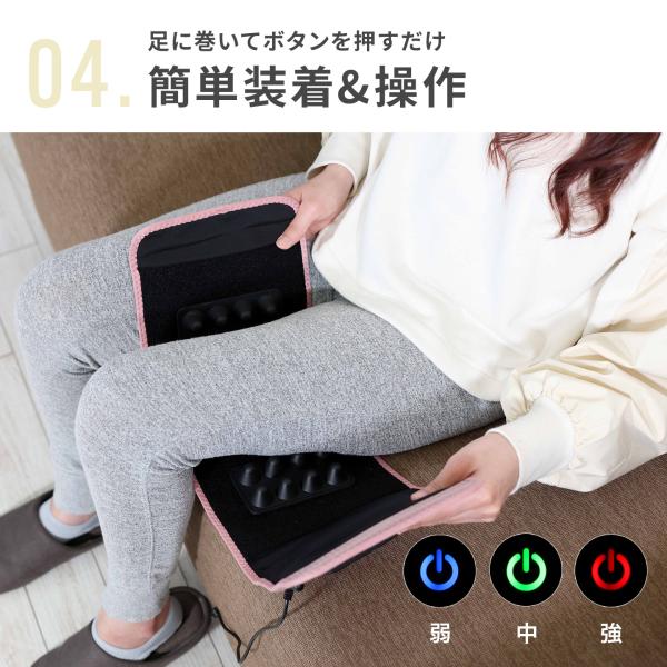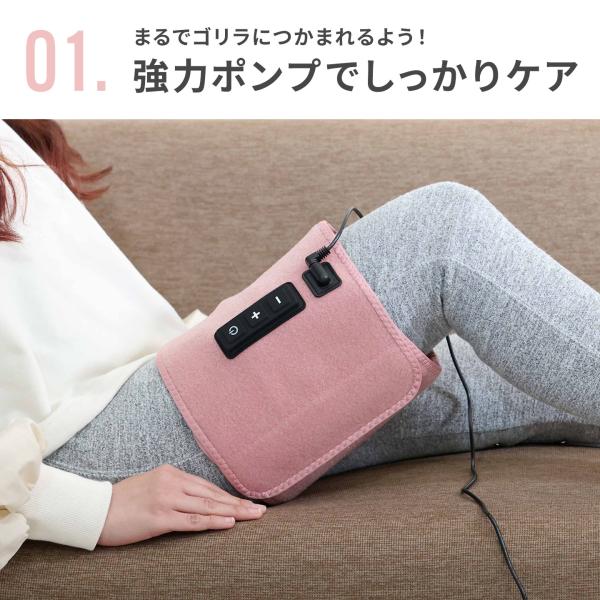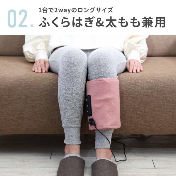 1台でふくらはぎだけでなく太ももでも使用可能な2wayタイプ。操作も簡単で、スタートは電源ボタンを押すだけであとはお任せ。太ももにしっかり巻ける大判サイズ。面ファスナーだから調節も自由自在です。エアバッグにぐんぐん空気が入ってアプローチ。強さも3段階から選べます。片足タイプで思い立ったらお家ですぐ使える手軽&コンパクトな大きさ♪開始から約10分で自動で止まるタイマー付きでお風呂上がりなどのリラックスタイムにぜひ。自分へのご褒美や母の日、父の日、敬老の日のプレゼントにもおすすめです。