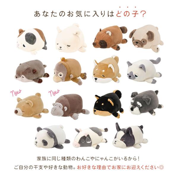ぬいぐるみ ねむねむアニマルズ ねこ パグ 小さい ミニ クッション マスコット かわいい りぶはあと 動物 猫 柴犬 カワウソ パンダ ゴリラ