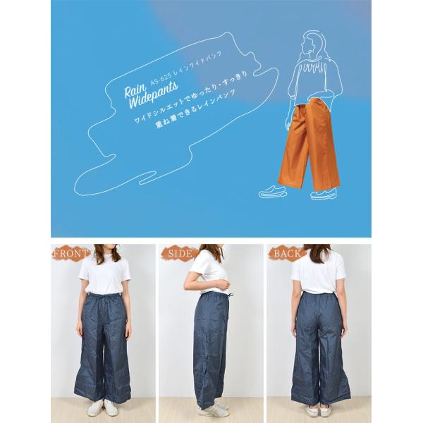 ワイドパンツの上からも着られるワイドシルエットのレインパンツ。