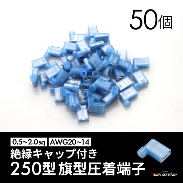 250型 旗型圧着端子 絶縁キャップ付き 50個