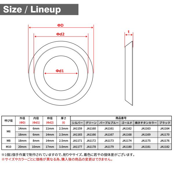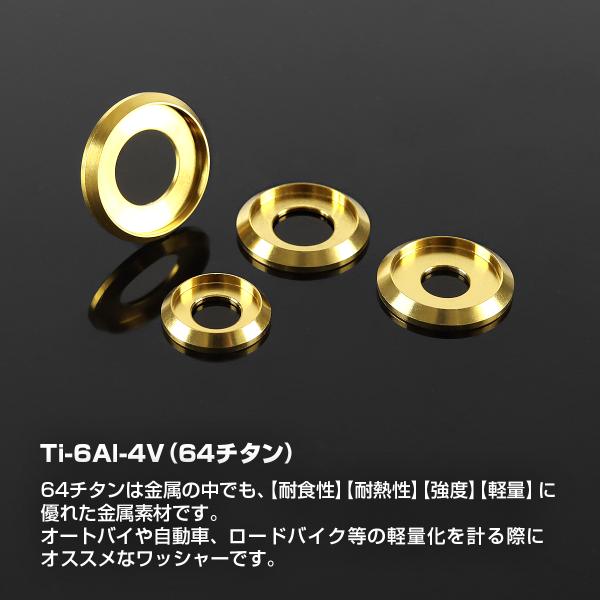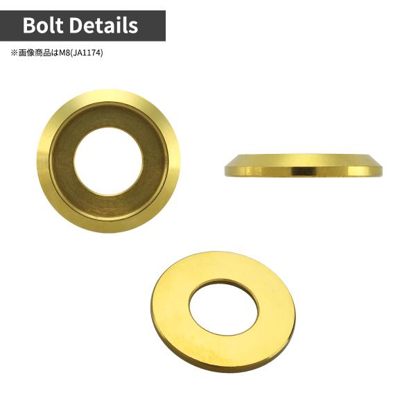 チタンワッシャー M6 外径14mm 枠径11mm フジツボ型ワッシャー ゴールドカラー 1個 JA1162