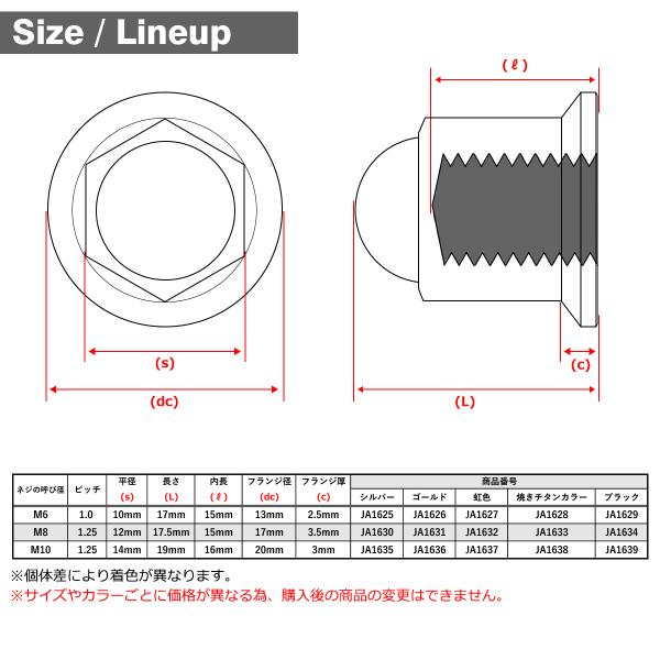 チタンナット ドームナット M10 P1.25 袋ナット フランジ付き 焼きチタンカラー JA1638