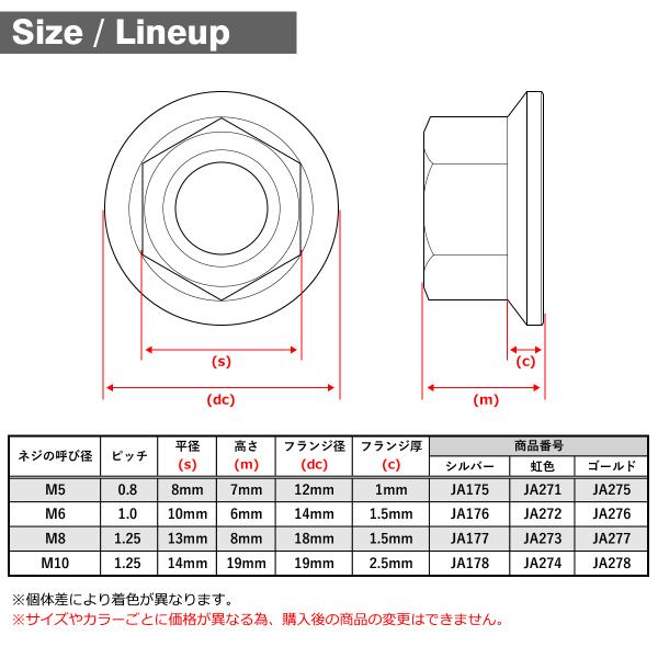 六角ナット型、フランジ付き、ナイロンリング内蔵(サイズは画像に掲載)