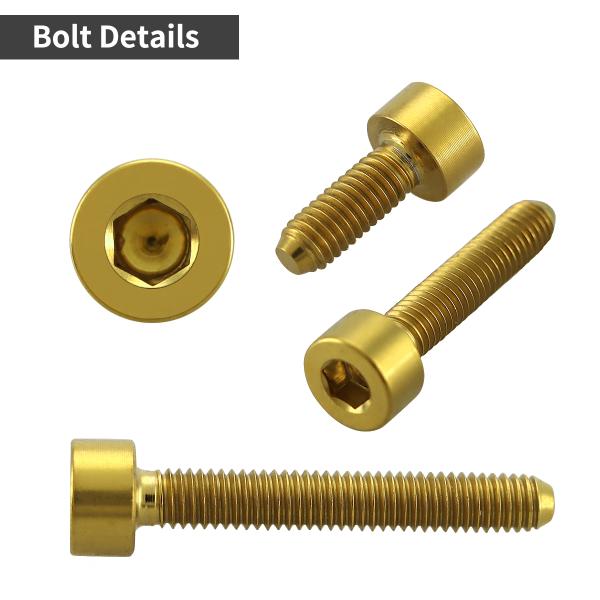 チタンボルト M3×6mm P0.5 キャップボルト スリムヘッド キャップボルト 六角穴付き ゴールドカラー 1個 JA2084