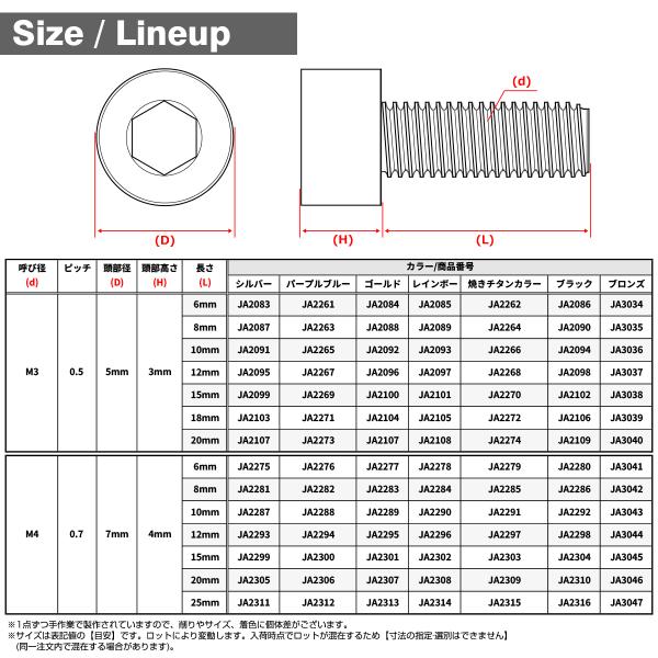 六角穴付き(サイズは画像に掲載)