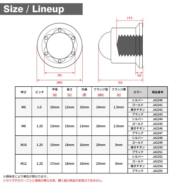 チタンナット ドームナット M12 P1.25 袋ナット フランジ付き ブラック JA2255